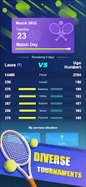 Tennis Rising Star är ett fängslande sportspel där spelare får uppleva en intensiv tennisresa. Som en 16-årig talang tar du steget in på banan och strävar efter att bli en världsmästare. Spelet erbjuder en unik spelupplevelse med en rik karriärväg som omfattar lokala turneringar, proffstourer och jakt på de fyra Grand Slam-titlarna. Med ett snabbt och spännande progressionstempo kan spelare utveckla sina färdigheter och utmana sig själva.